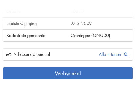 Nadat je een perceel hebt gekozen, verschijnt er onder de tabel met perceelinformatie een knop die je naar de webwinkel leidt: