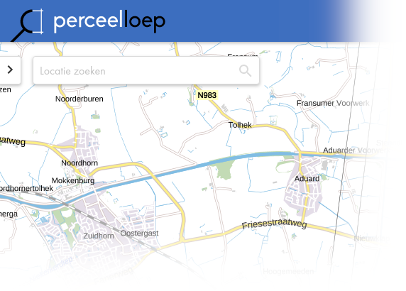 Hiermee kun je snel inzoomen op de juiste stad of straat. Gebruik daarna het kaartvenster om het gewenste perceel te selecteren.