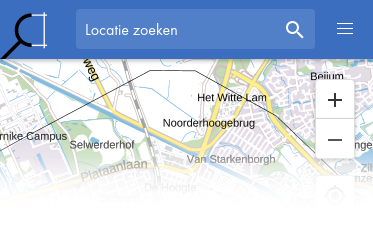 Op een computer of tablet vind je de zoekbalk in de linker bovenhoek van het kaartvenster: